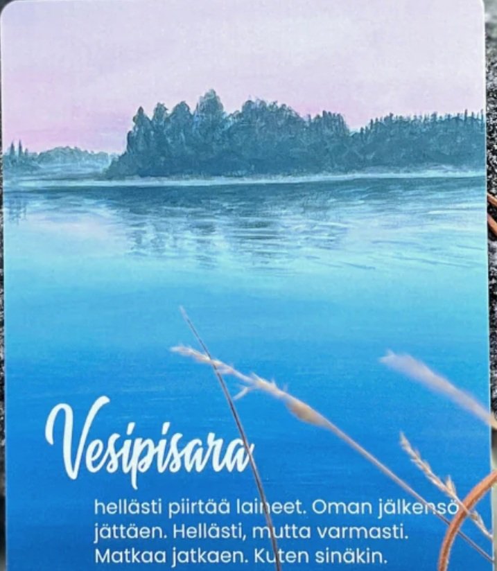 Olen halunnut luoda jotakin, joka muistuttaa meitä lempeydestä itseämme ja muita kohtaan. Kortit kutsuvat pysähtymään, hengittämään ja näkemään kauneutta arjessa. Ne sopivat sinulle, joka kaipaat pieniä valonpisaroita tai haluat antaa merkityksellisen lahjan läheiselle.