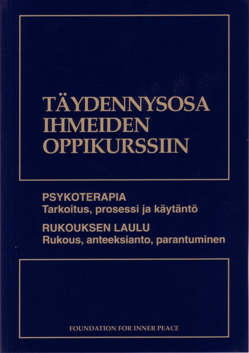 Tässä Ihmeiden oppikirjan täydennysosassa käsitellään osiot: Psykoterapia: tarkoitus, prosessi ja käytäntö sekä Rukouksen laulu: rukous, anteeksianto, parantuminen. Kirja selventää edellä mainittuja aiheita ja kuuluu kiinteänä osana Ihmeiden oppikurssiin.