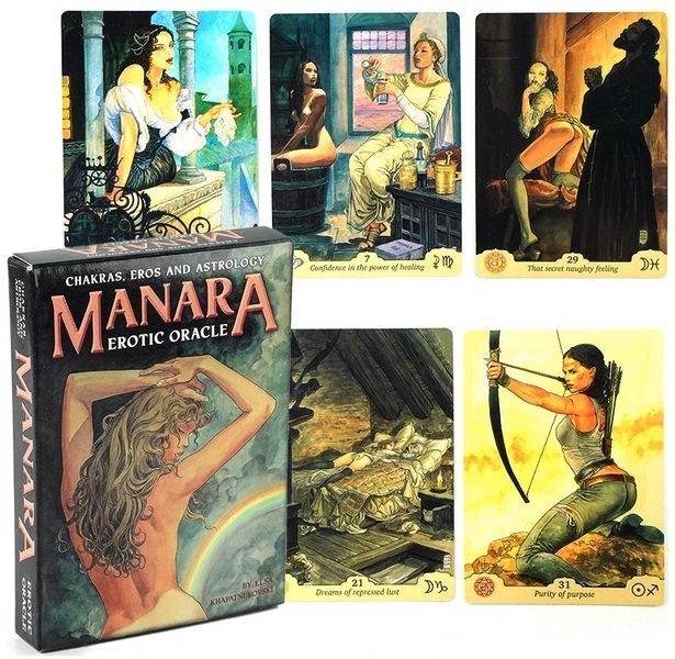 An Oracle for those choosing to believe in sex, not as a myth, but rather as an experience. Following the long standing success of the Manara Erotic Tarot, these oracle cards combine the enticing art of famous artist Milo Manara with astrology and chakra to create surprisingly insightful readings on very complex subjects. Artwork by Milo Manara, Elsa Khapatnukovski,