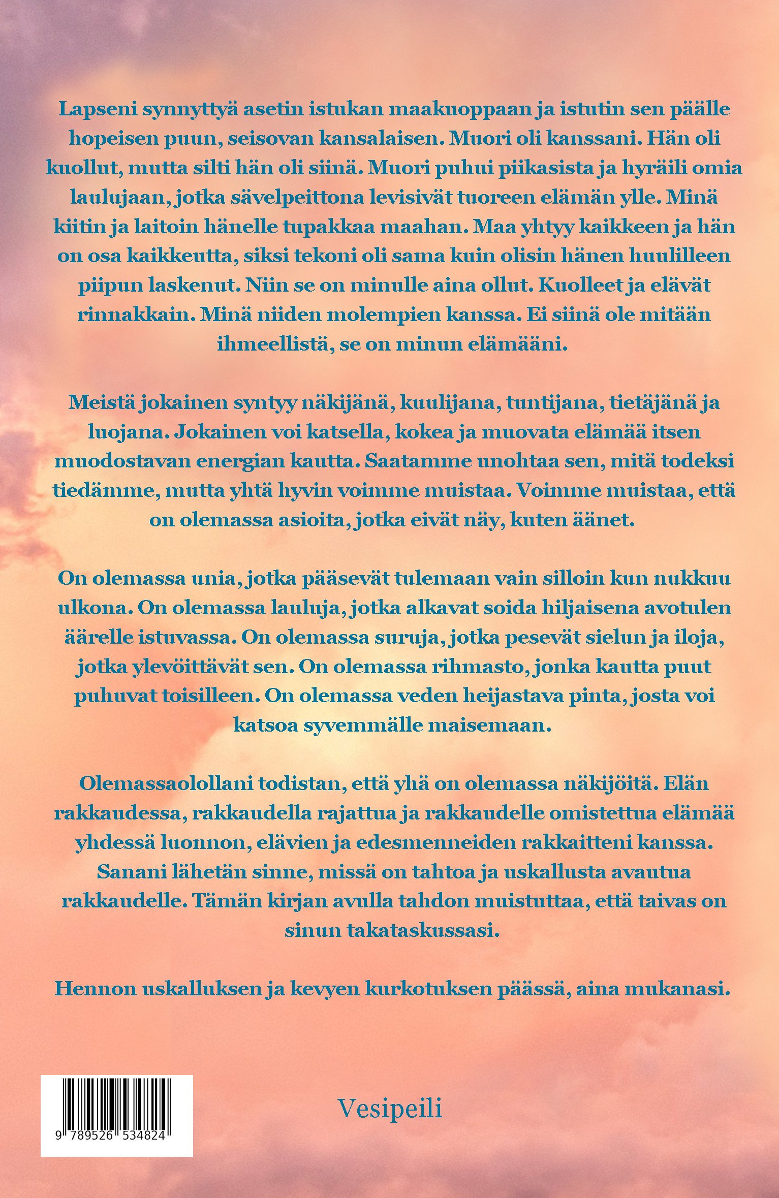 Lukijoidensa rakastama ja näkijänä tunnettu Niina-Matilda Kuusisto on kolmessa aikaisemmassa Näkijä-teoksessaan kuvannut taivaltaan ja työtään henkiväen kanssa. Henkioppaiden läsnäolo ja ohjaus ovat edelleen luonteva ja kaunis osa Niina-Matildan matkaa.