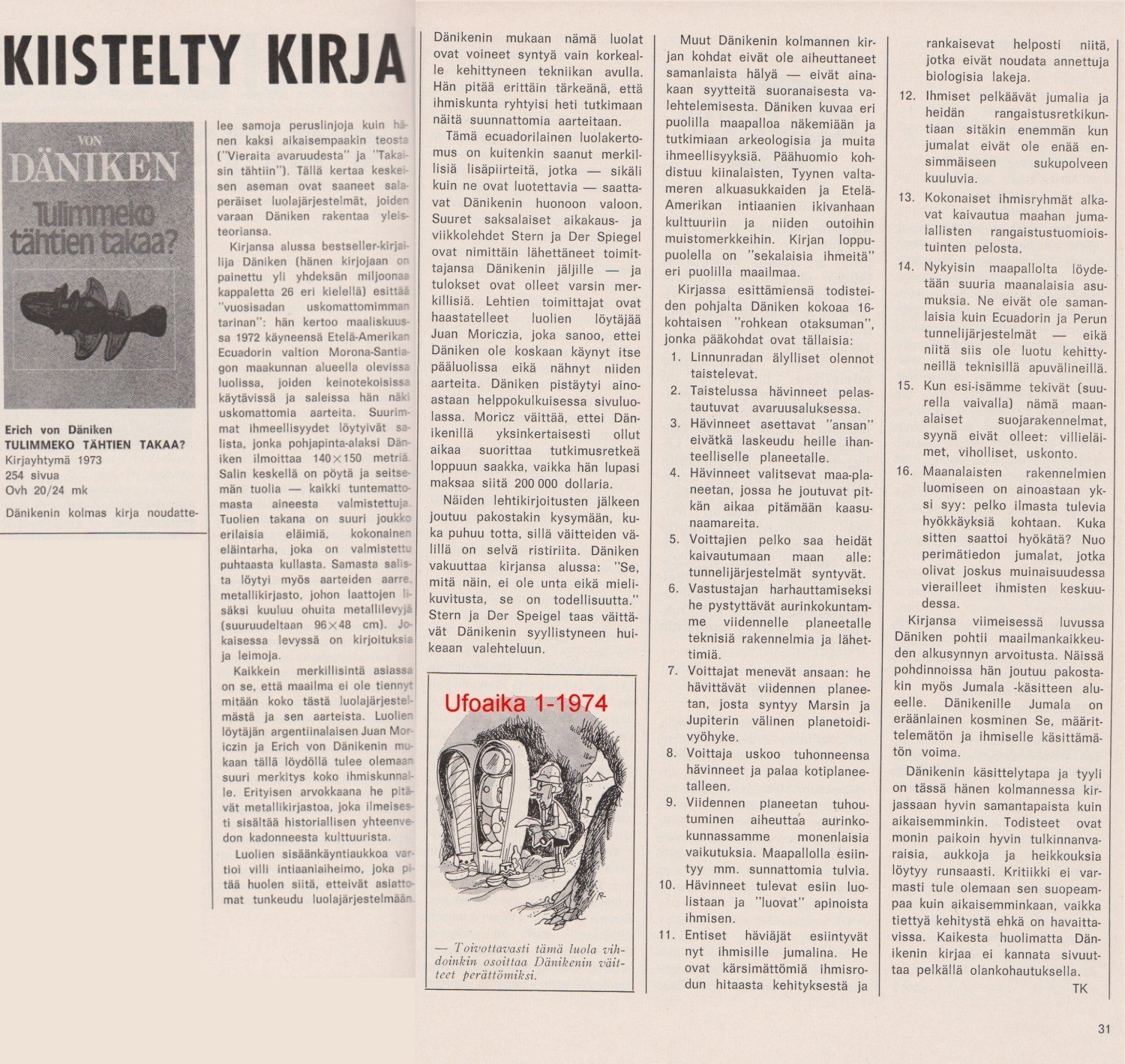 Arvio UFOAIKA-lehdessä 1/74: Tulimmeko tähtien takaa?